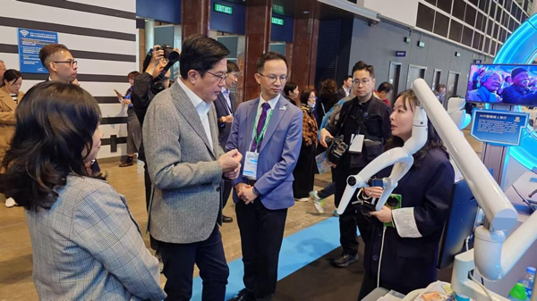 As he toured the National Innovation Technology Corridor, Mr. Hui was deeply impressed by the live demonstration of the Dr. J AI Breast Cancer Screening Robot and took a moment to stop and engage with the team.